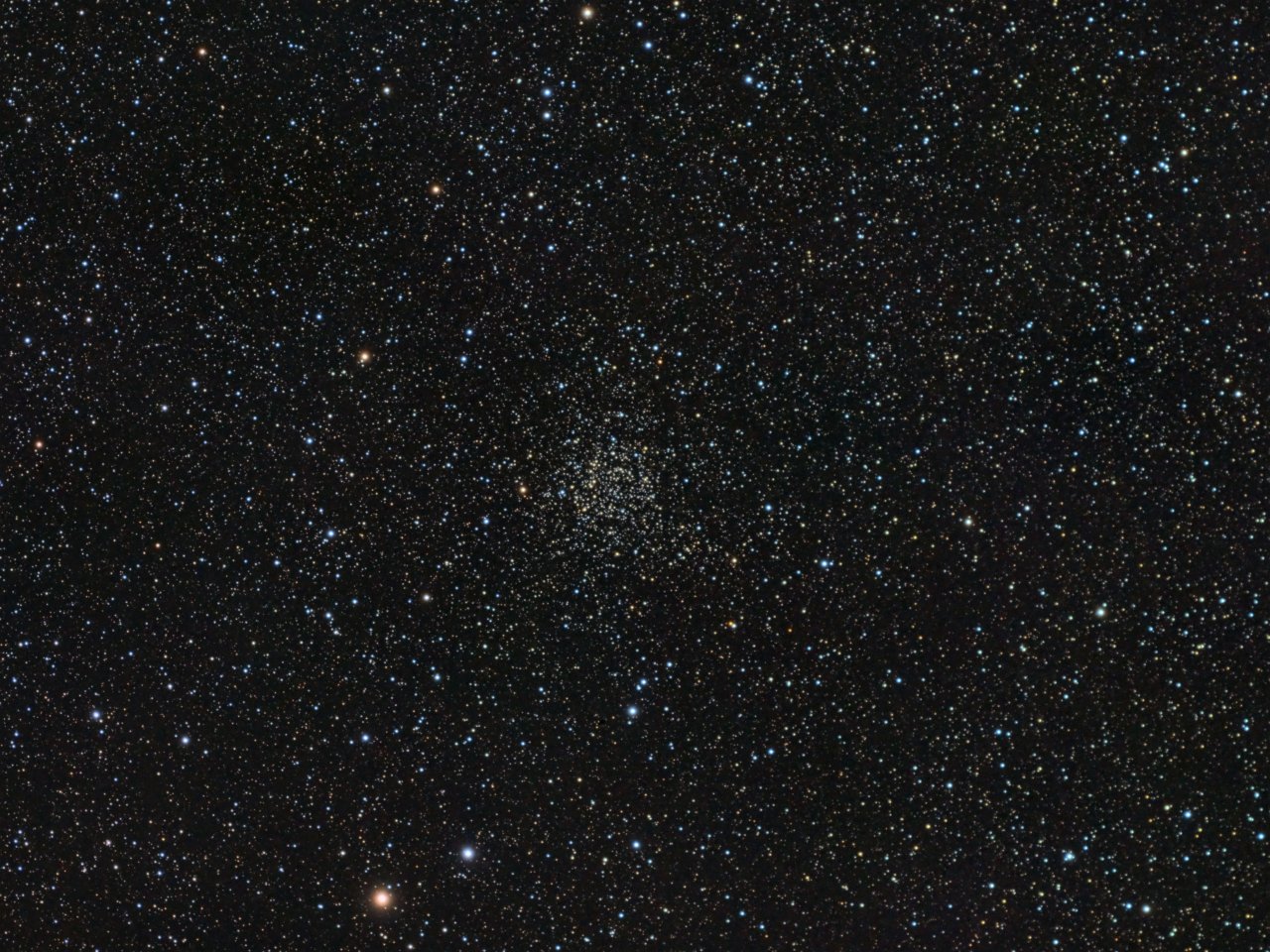 The cluster lies about 7,600–8,000 light-years from Earth and is an intermediate-age to old open cluster at roughly ~1.6–1.7 billion years. That age is a big part of its charm: many of its original hot, massive blue stars have long since evolved away, leaving a prominent population of cooler yellow/orange giants mixed among a dense spray of fainter main-sequence stars.